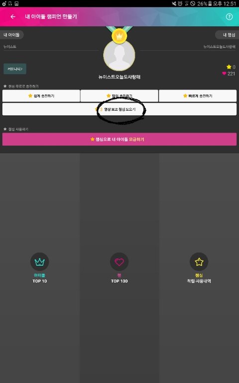 쇼22챔 메인화면에 있엉!!