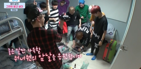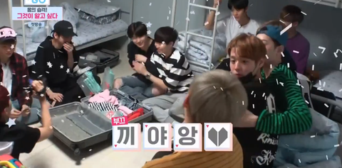 자기 짐을 포기하고 직접 포장한 멤버들 선물 공개하는 째니(이때 짼몰이하려고 선물만 챙기고 각자 방으로 돌아가는척하는 멤버들)
