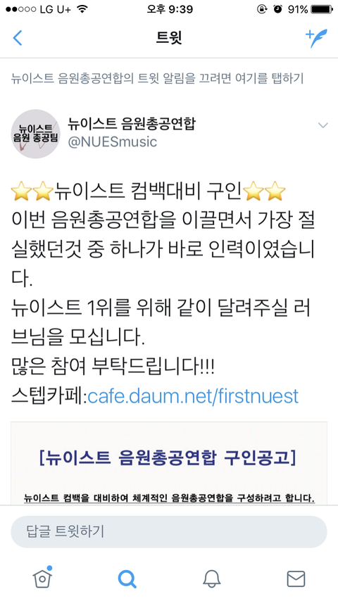 인력이 많이부족한가봐ㅠㅠ 다들 스밍하면서 아이디 보내고있찌??믿을게 신청 할 러브들은 참고해!