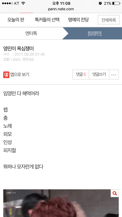 나 예전에 엔터에 영민이 글 올린적 있었는데