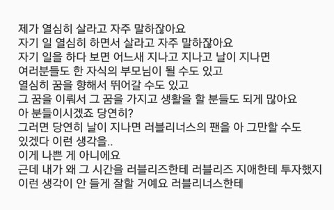 이게 유지애가 올해(17년) 콘서트에서 팬들한테 말한거..