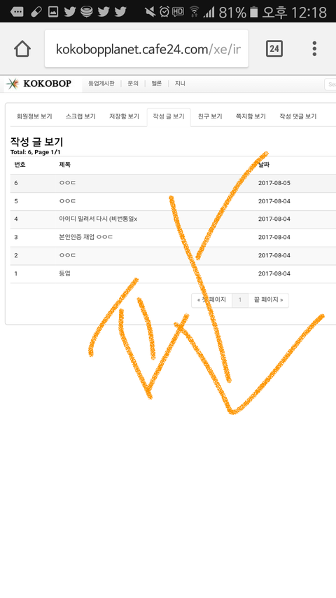 내가쓴글 눌렀는데 이렇게뜸 띠발 머야