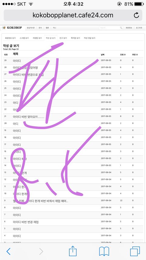 야 썩수 본인인증 할때 문자오잖야