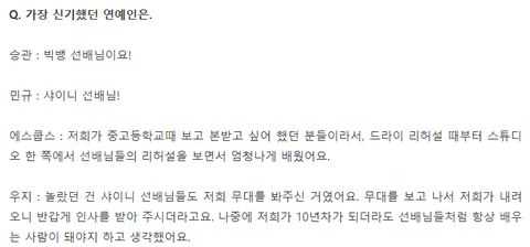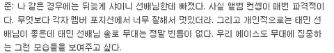 멤버들 : 노래 너무 좋아요. 공감합니다.