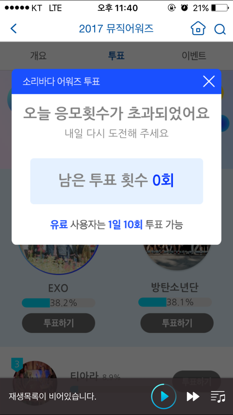 다른 타가수는 다 가렸어!!! 오늘 무슨날인지 모르지만 개인 그룹 다 일위!!!❤️