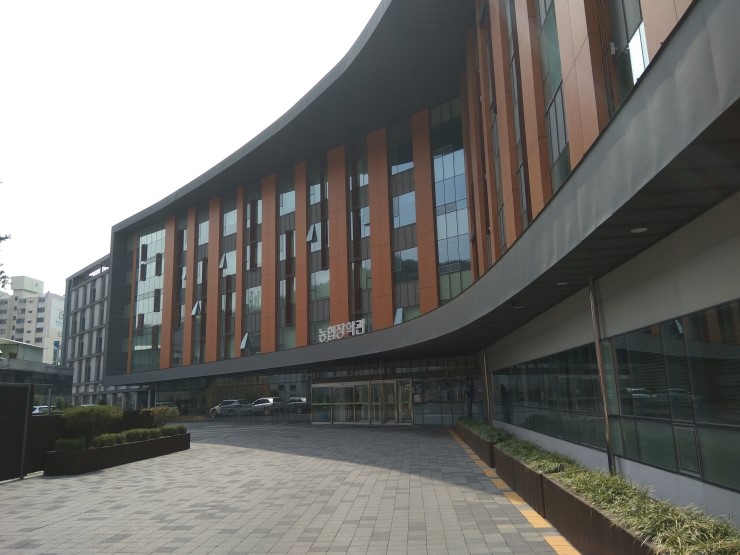 농협장학관의 외부모습입니다. 매우 세련되어 보이는 건물 모습이네요!!