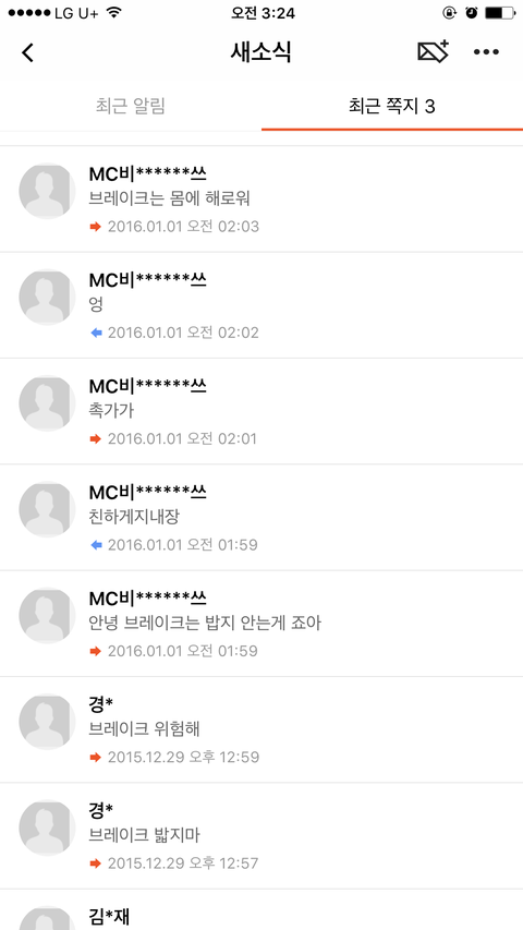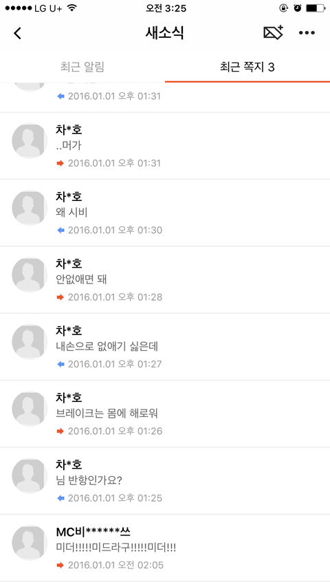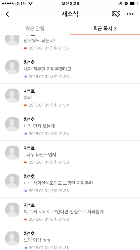 주황색이 내가 보낸 거고 파란색이 상대방이 보낸 거임