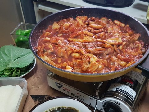 불위에서 바로 먹는 오삼불고기
