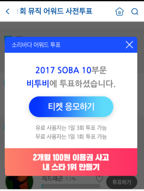 1.소리바다앱깔기 2.로그인 3.어워즈들어가서 BTOB투표!