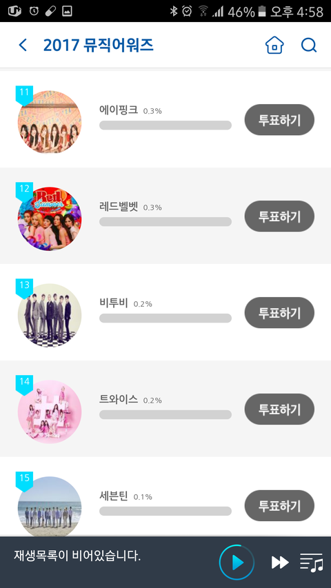 소리바다깔고 BTOB투표해주면 안됄까? 애들 13위야...10위 안에 들어야지 공연 할 수있대...제발ㅠㅠ