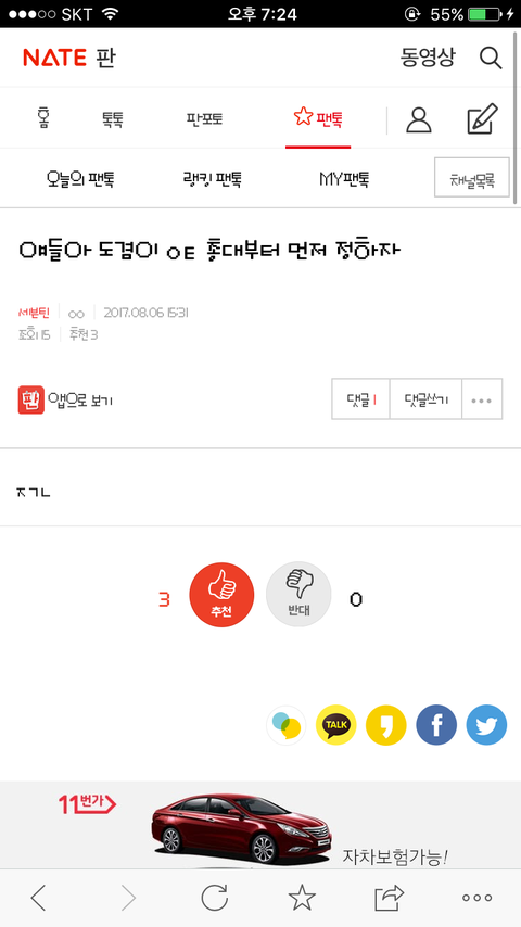나지금 되게 부들부들 거리거든? 나 밥먹는 사이 총대 한명더 정한거니,아니면 다른애가 나 사칭하고 있는거니.