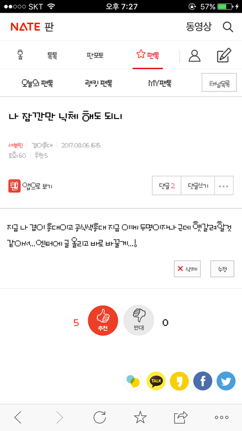 내가 밥먹고 온다고 했고 해서 지금 왔ㄴ는데 뭐야? 나보고 사칭한다는데? 내가 지금 사칭 당하고 있는것 같은데?