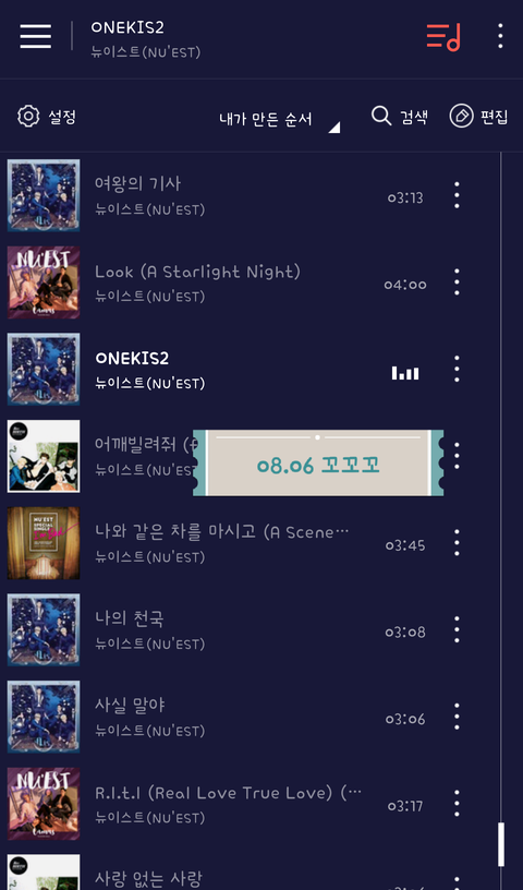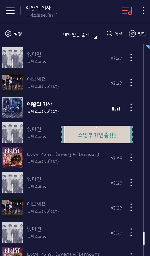 이건 권장스밍목록으로 스밍하자는 러브가 있길래 인증!