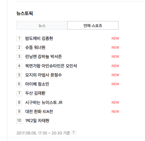 뉴스토픽에 쩨아리 떴다