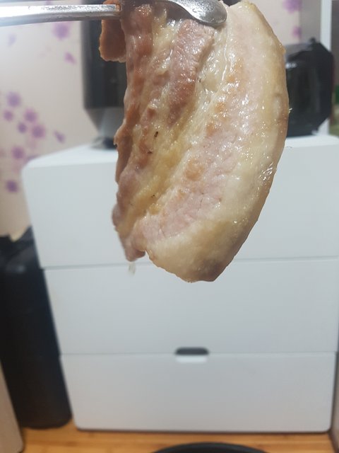 대충찍은거라 잘안보이지만 고기사이사이에 밝은 노란빛이 계속있어요