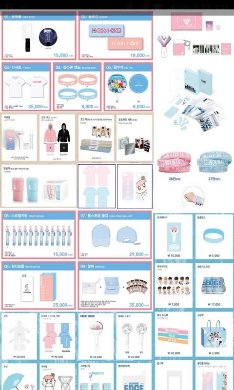 한 가수를 대표적으로 상징하는 것이 공식색입니다 어떤 것이 세븐틴MD물건이고 어떤 것이 워.너원MD인지 한눈에 알아보기 어렵습니다 이래도 저희가 색을 판단하지 못하는 사람이고 예민한 사람인가요?