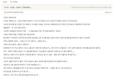 JYP 팬즈에 쓰신 글