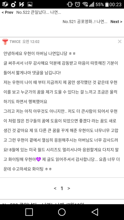 위 글을 읽고 감동한 트와이스 나연의 답글