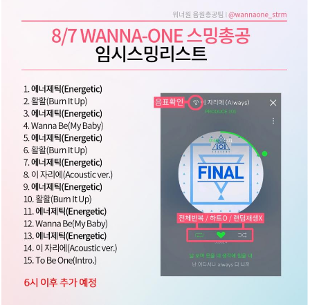 한 시간에 맞춰 16번째 곡부터 추가 될 예정이래