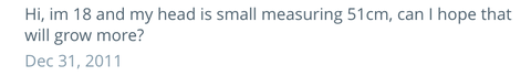 "안녕하세여, 18살이고 머리둘레가 51cm 정도 되서 작은 편인데, 더 커질까요?"