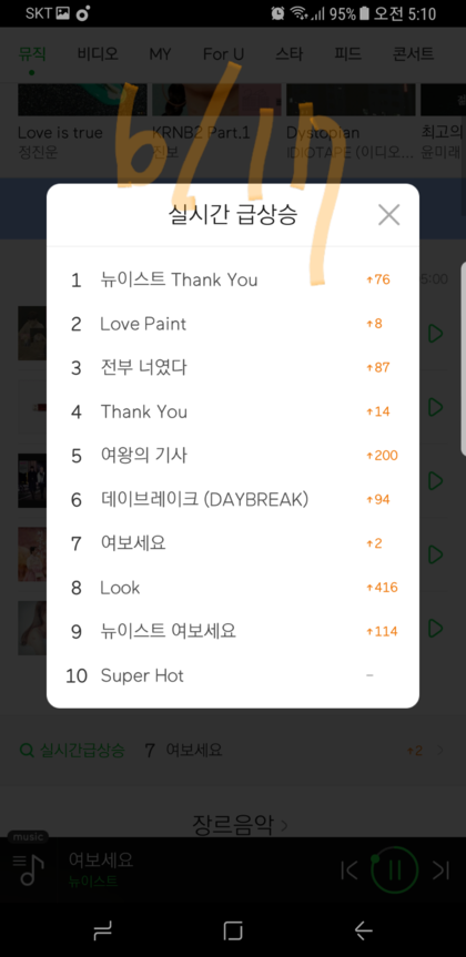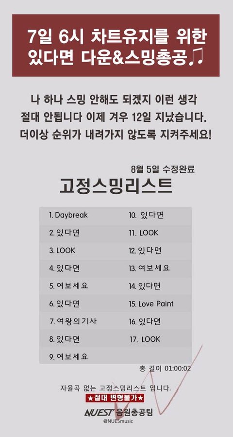 우리 애들 꽃길 걷게해줘야지 다들 노력하고있고 지금 음원차트 터질집이란거 아는데 혹시 지금 안심하고있는 러브들 조금씩만 더 노력하자❤