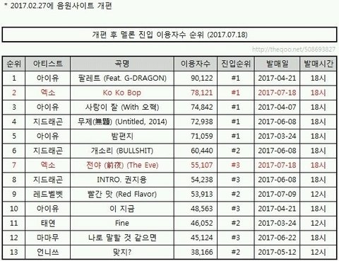 차트개혁 후 진입 이용자수 1위