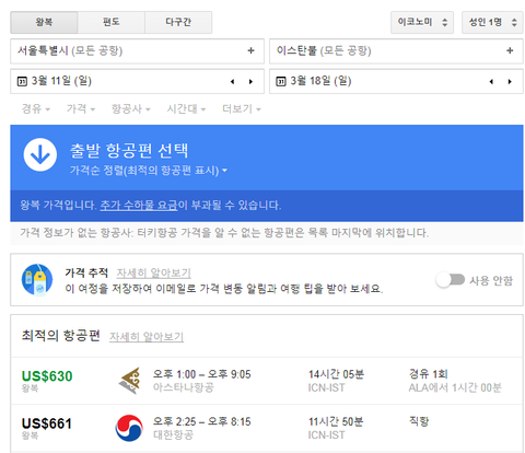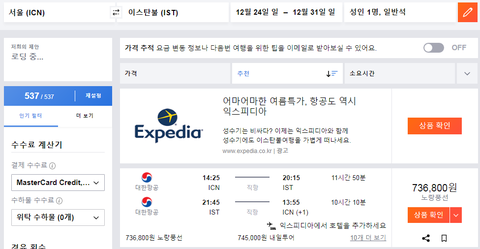 인천 -> 이스탄불 직항 이구요 . 70만원 밑으로 구매가 가능합니다.