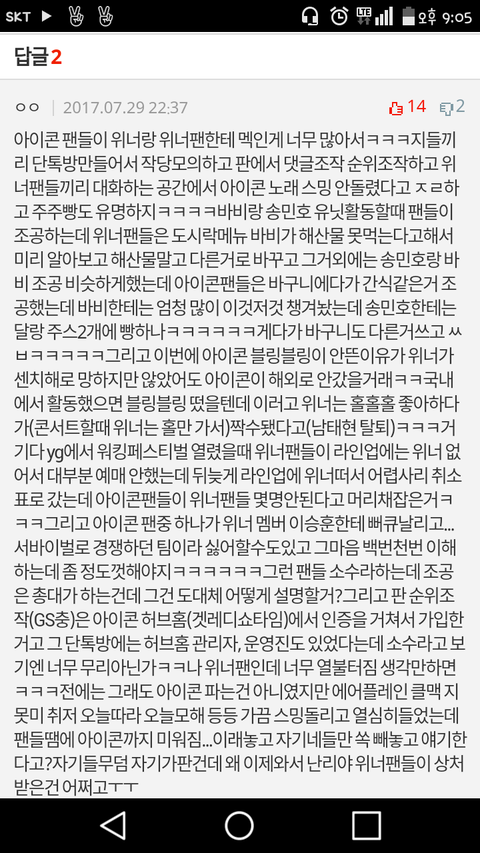 예전에 올라왔던 한 댓글인데 얘가 우1너 팬일지 아예 다른팬인지는 모르겠지만 아무튼 여기에 반대수 별로 없기도 하고...그리고 사실 이거보니까 ㅇ1너1써1클한테 좀 미안하긴하다 물론 내가 한건 하나도 없지만ㅇㅅㅇ
