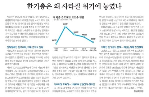 그 결과 한기총은 두 개, 세 개로 갈라지고 날로 교인수가 급감하여 지금은 189만에 이르고 있습니다.