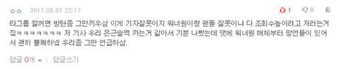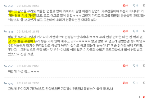 근데 이건 좀 우리를 은근슬쩍 깎아내리는 글같아서 별로 기분이 썩 좋지는 않았지만 별로 아무 생각 없었어. 원래 기자들이란 그러니깤ㅋㅋ