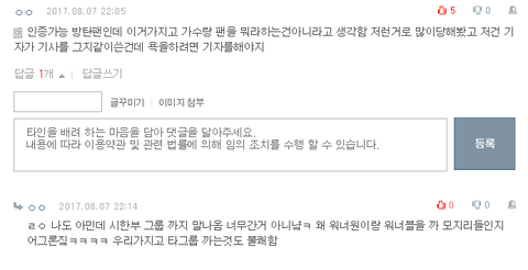 근데 이 댓에는 반대가 많더라구ㅠㅠ 왠진 모르겠지만 대댓에도 아미면 이렇게 생각 안한다는 아미들도 몇 있었고.....