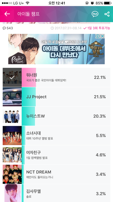 아이덜챔푸 투표하장