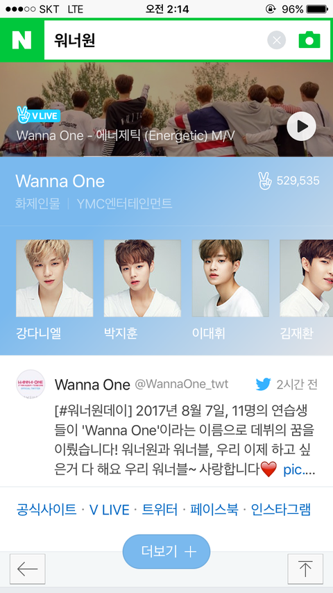 워너원 검색해봤는데