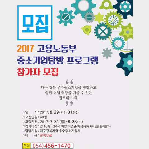 2017 고용노동부 중소기업탐방 프로그램 참가자를 모집합니다.