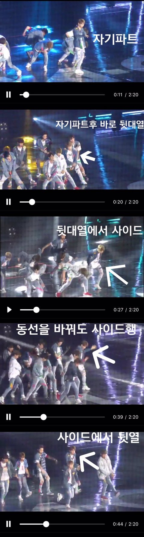 3.대형에서 계속 녤이 센터주변에서 춤추고 뒷줄로 안가게 변경.