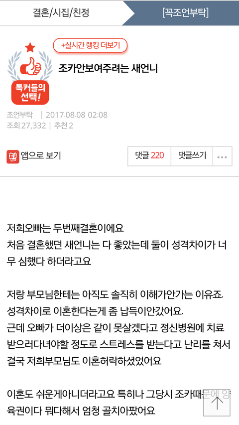 사내 커플인데.. 남자가 프사 하겠다고 해도 말려야 할 분이.. 님 참 해맑으시네요