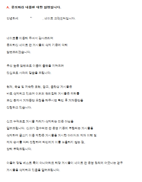 고객센터에 신고관련 글 올렸는데