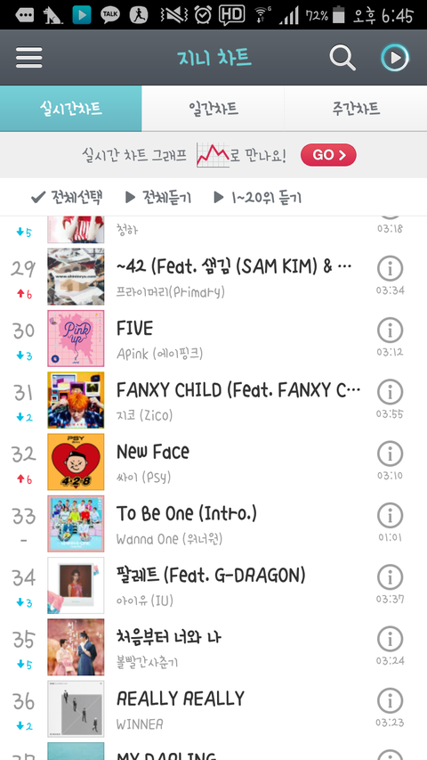 젤낮은건 33위고 다 군데군데개판이다 스밍좀돌리자제발ㅜ어제데뷔했는데 벌써부터이래..