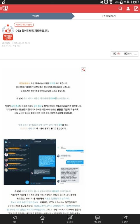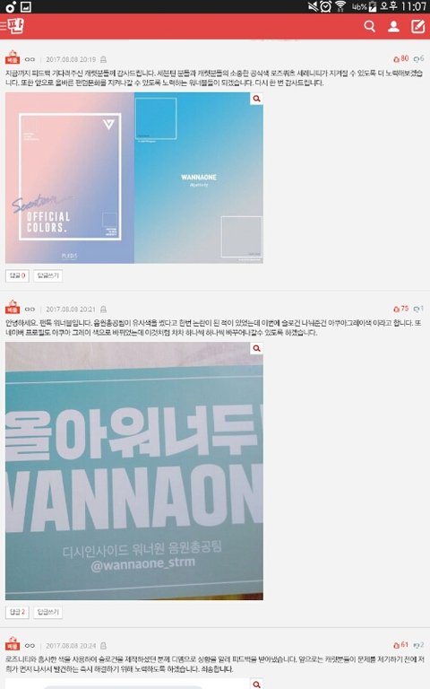 팬톡에 워너원이 몇명인데 조회수랑 추천수가 저정도 밖에 안나오냐