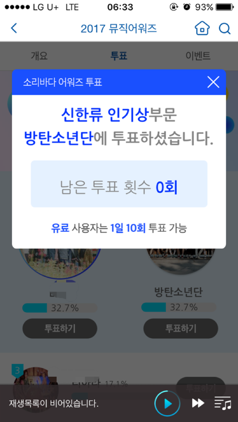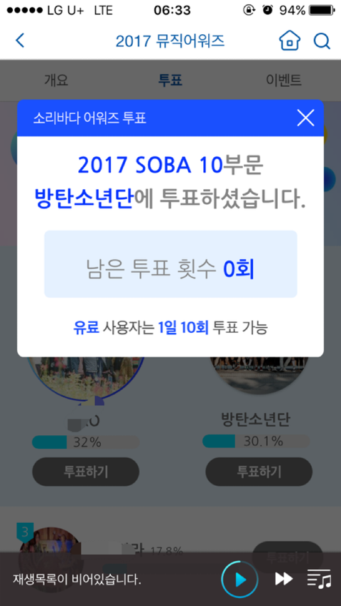 부문당 50표씩 하구 왔옹