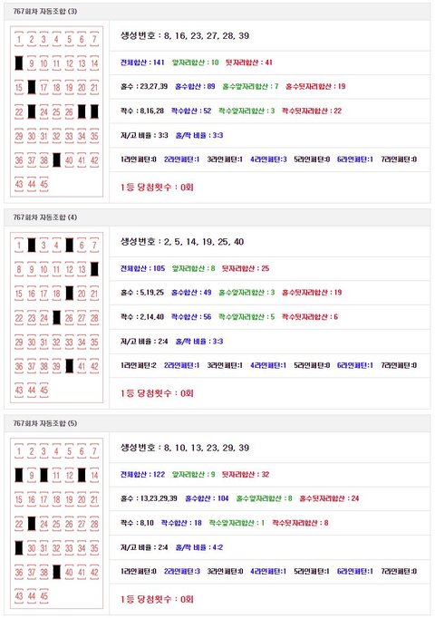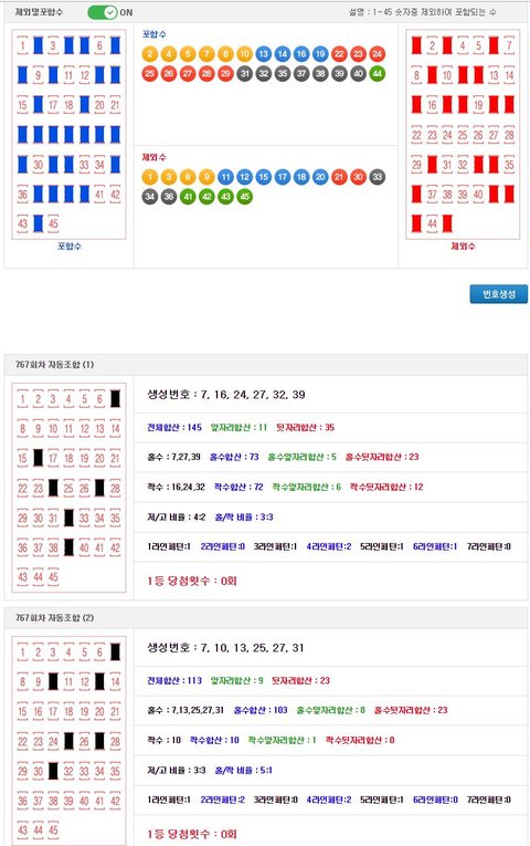 로또 767회 예상번호 수동조합