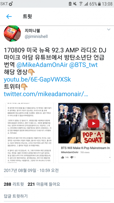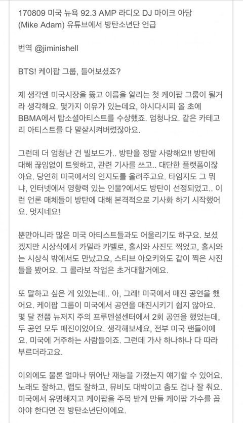 미국 라디오 디제이 방탄언급!!