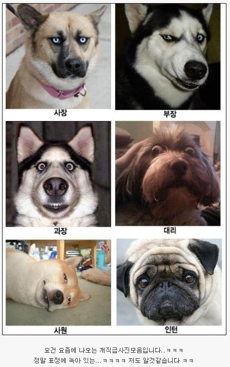 예전에 이 사진을 보고 얼마나 웃었던지요...직장인 이라면 많이들 공감하겠지만웃기기도 하고 슬프기도 하고지금 이 개직급 사진을 보고