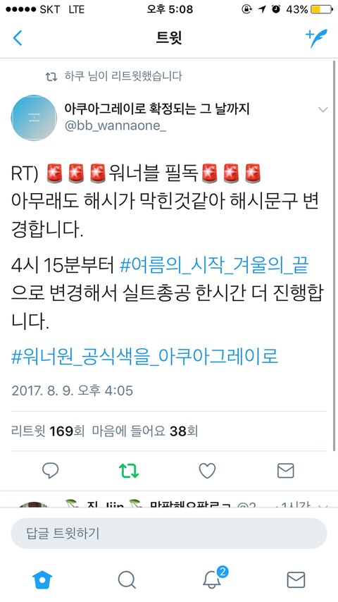 해시태그 문장 바꼈어