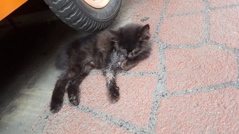 젤네일 도구를 살게 있어서 시장을 지나던중 길가에 누워있는 아기 고양이를 발견함