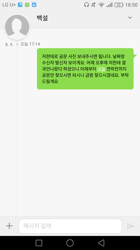 못들었다 할까봐 문자도 남김.