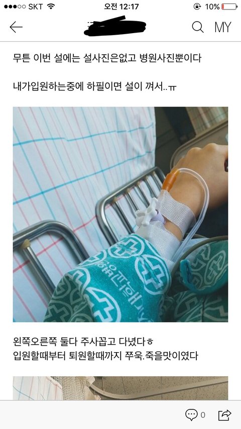 음 한가지 에피소드를 말하자면 내가 대전 대학병원에 입원했을때 맨날 침대시트에 생리 다 새고..그리고 내가 중3이여서 산부인과입원실을 못쓰고 그 소아병동실을썼는데 나 담당 의사쌤이(아침에 진찰돌우실때)주치의가 남자쌤이셨는데 맨날 내 생리에대해서 말하고ㅠㅠㅠ오늘은 어떻냐구ㅠㅠㅠㅠㅠ그때 되게 챙피했었어. 아 맞다 그리고 나 분만실도 갔다왔어 그땐 새벽이라서 응급실이랑 분만실이랑 무튼 응급으로된 곳만 열렸는데 산부인과는 분만실밖네 안열려서..그때 내가 환자복입고 들어갔었는데 거기 사람들 다 나 쳐다보고ㅠㅠㅠㅠ수근거리고 그러셨다 그때 되게 기분이 그랬어ㅠㅠㅠ