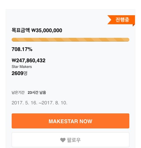 마지막날이라서 많이한듯..? 낮에 그거 올라오고 실망이란 실망은 다했지만.. 700퍼달성해서 사진 전시회 개최한대 그나저나 2억5천정도 되는 저 금액 멤버들한테도 가겠지?ㅠ 제발 그냥 다 갔으면..