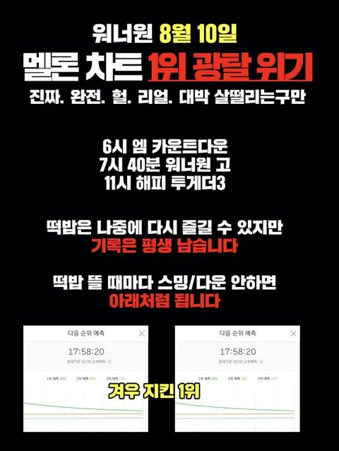 1위뺏기게 생겼어ㅜㅜㅜㅜ내일엠카맞지?? ㅜ