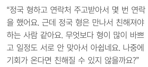 오 정국이는 만나야 친해지는 스타일인가봐